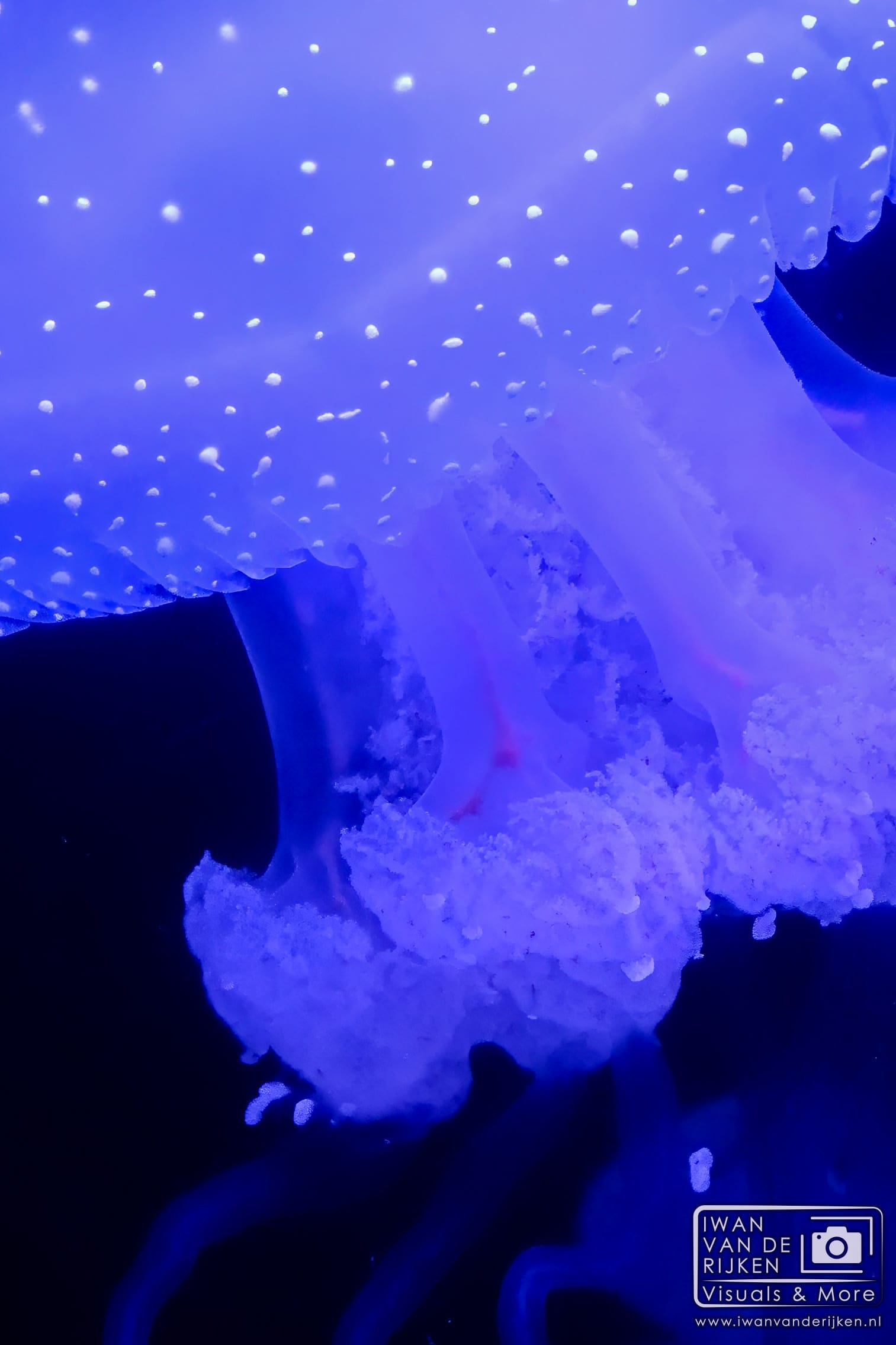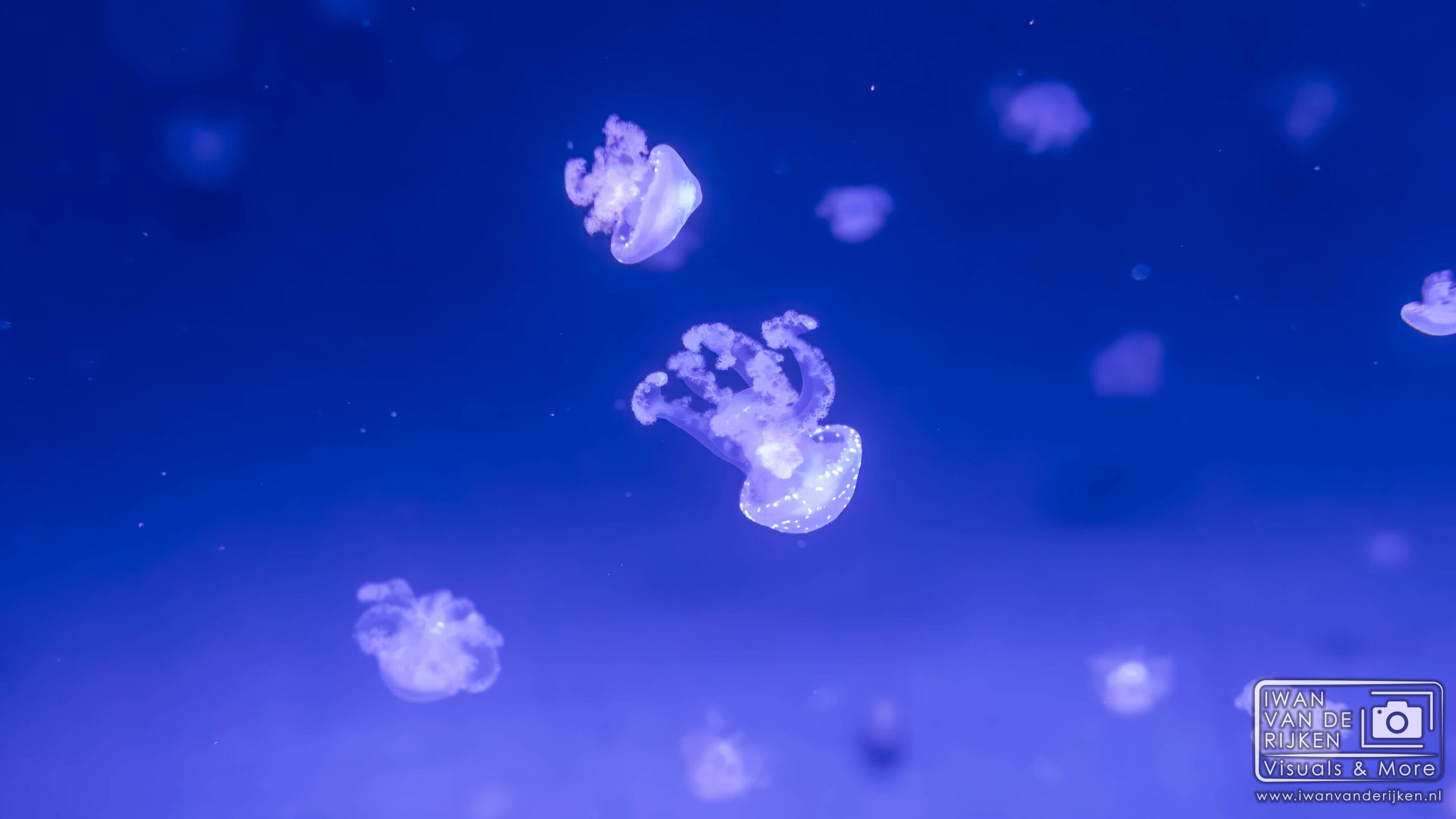 Daar zijn ze. De blauwpuntkwallen. Ze zien eruit als kleine, glazen parapluutjes die door een onzichtbare hand worden geopend en gesloten. Het is bijna niet voor te stellen dat ze echt leven; ze lijken meer op vloeibare kristallen die door het water dwarrelen.